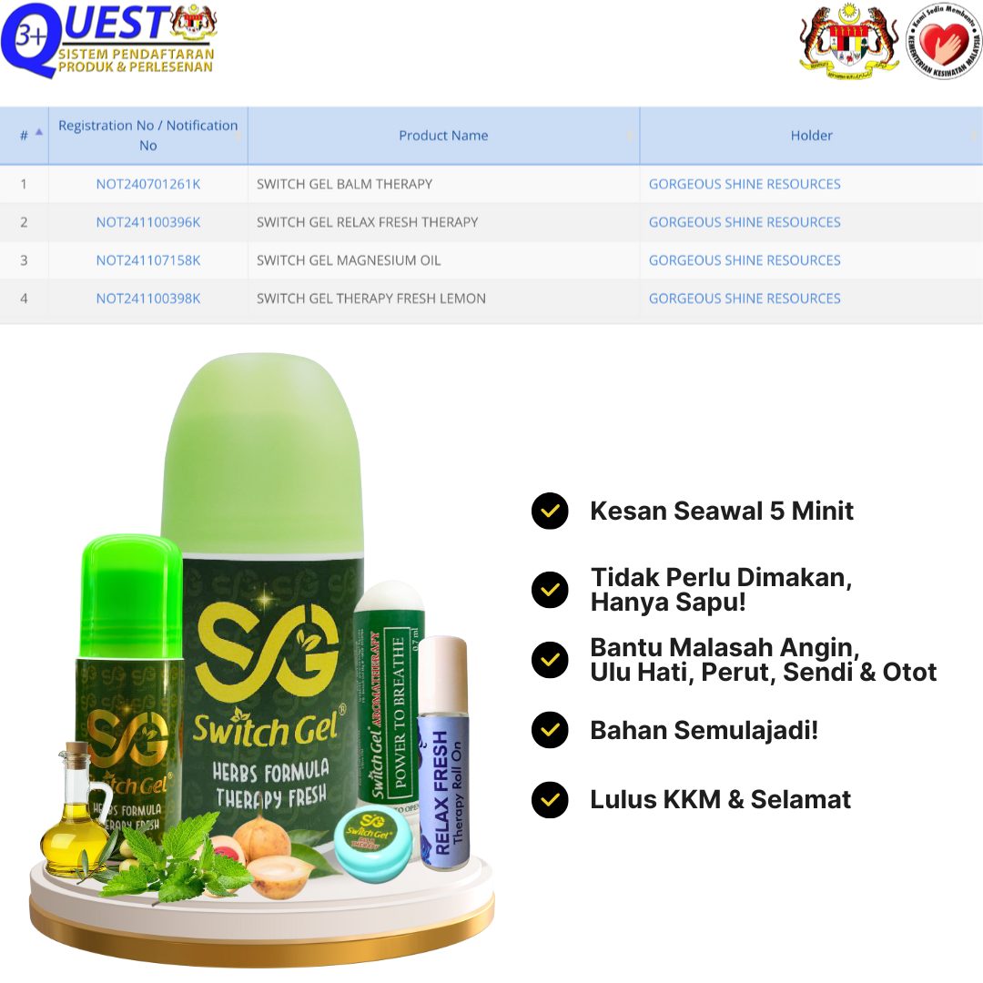 Switch Gel komited dalam memastikan keselamatan pengguna dengan formulasi bahan semulajadi untuk kegunaan luaran dan selamat digunakan oleh ibu mengandung serta kanak-kanak.